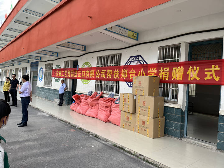 在“六一”國際兒童節到來之際,安徽工藝貿易進出口有限公司向蚌埠市五河縣頭鋪鎮鄭臺小學(安徽工藝光彩小學)捐贈了一批運動鞋和書包等物品。進出口第六分公司向榮經理捐贈了實物,給予了大力支持。