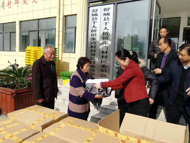 ??? 寒風習習,陽光明媚。11月22日,時值小雪之日,公司董事長薛穎與中國出口信用保險公司安徽分公司總經理鄧成釗率隊一同前往信保安徽分公司定點扶貧村----舒城縣千人橋鎮張灣村考察學習。他們在張灣村參觀了村支委會,看望慰問了駐村扶貧工作隊、當地學校師生和貧困戶代表。趙克勇代表公司認真挑選,整理了16箱、500條御寒毛毯,分別送給了村養老院和貧困戶,在這小雪之日送去公司的溫暖。