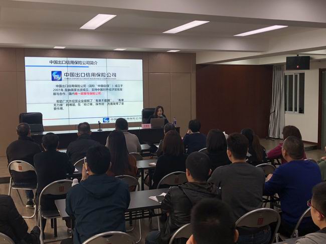 ?本次培訓邀請了省出口信用保險公司專家孫巍巍處長和王貝貝老師授課。專家在簡要介紹了出口信用保險的性質和發展歷程后,詳細闡述了出口信用保險保障范圍和解決方案,講解了信用保險工具的使用規則,并通過典型案例分析提示了信用保險使用過程中關鍵環節的操作要點。授課內容簡潔實用,到會人員普遍認為這次培訓含金量高,受益頗多。