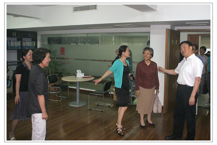 5月22日傍晚,早已過了下班時間,公司辦公大樓依然燈火通明,省商務廳方西屏廳長帶領著處室負責人正在各辦公室、樣品間視察,與員工親切交談。