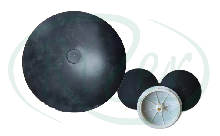 薄膜由進口橡膠原料EPDM/硅膠材料制成。橡膠薄膜上有微孔,薄膜表面小工字形的細孔通過螺旋向外開孔排列,不僅可以將曝氣器排出的氣泡直徑保持在一定范圍內(nèi),還可以相對降低曝氣器的阻力。在整個服務(wù)范圍內(nèi),確保滿足充氧要求和池內(nèi)布氣均勻性要求。橡膠薄膜的中間區(qū)域為非開口區(qū)域,特別設(shè)計為自閉式和加厚結(jié)構(gòu)。當曝氣停止時,在水壓的作用下密封和關(guān)閉通風(fēng)孔,有效防止污水回流和磨損。